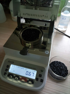 再生尼龍是一種經(jīng)過生產(chǎn)干燥的化工產(chǎn)品。干燥的作用因其直接暴漏于空氣中容易受到水汽侵染。再生尼龍中含水量的多少直接影響到尼龍制品的品質(zhì)。再生尼龍水分超標很容易使尼龍性狀發(fā)生輕微的變化,這種變化極易引起尼龍變質(zhì)問題。再生尼龍水分掌握在0.5%左右為宜。要時刻掌握加工時的水分含量標準,嚴格按工業(yè)標準執(zhí)行操作,否則會使尼龍料變性,由軟變硬;彈性迅速減小。以往實際工業(yè)生產(chǎn)過程中主要采用的辦法是用傳統(tǒng)的烘箱法。但是,烘箱技術(shù)古老,平均測一次都要用到10小時以上,是一項耗時的低效工作。而近些年出現(xiàn)和成熟的再生尼龍料水分儀對水分含量進行精確地測量,比烘箱高效精準得多。 通過使用這種再生尼龍料水分儀,發(fā)現(xiàn)這款水分儀操作非常簡單方便,下面便分享我使用這款儀器的一些經(jīng)驗和心得供化工企業(yè)和橡塑廠家參考借鑒。 ? ?