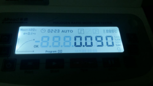 測試樣品1:為了檢測儀器的精確性,待儀器溫度降至30℃(常溫)以下時進行第二次測量,用藥匙取樣10-12g,用藥匙取樣10-12g纖維紙上,溫度設(shè)置85℃用儀器進行加熱,約3分鐘后檢測結(jié)束,檢測數(shù)據(jù)顯示0.090%;