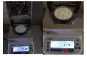 測試樣品:取5克大米,用粉碎機打成粉末狀,置于不銹鋼托盤中平鋪均勻,溫度設(shè)置120℃用儀器進行加熱,約12分鐘后檢測結(jié)束,檢測數(shù)據(jù)顯示14.38%;