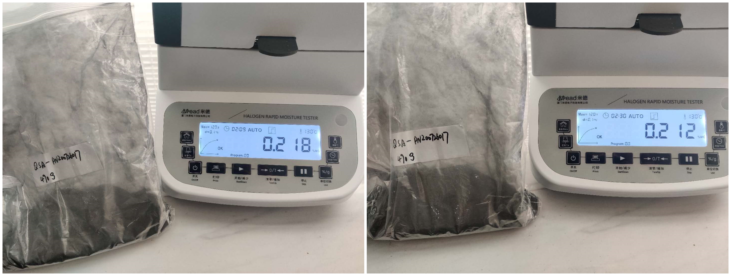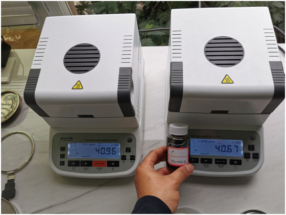 測試儀器:米德QL-720D(稱重精度0.001g,水分解析0.001%)