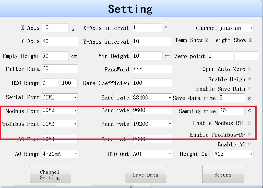 Modbus Port:與上位機(jī)通訊串口號(hào),默認(rèn)COM2.