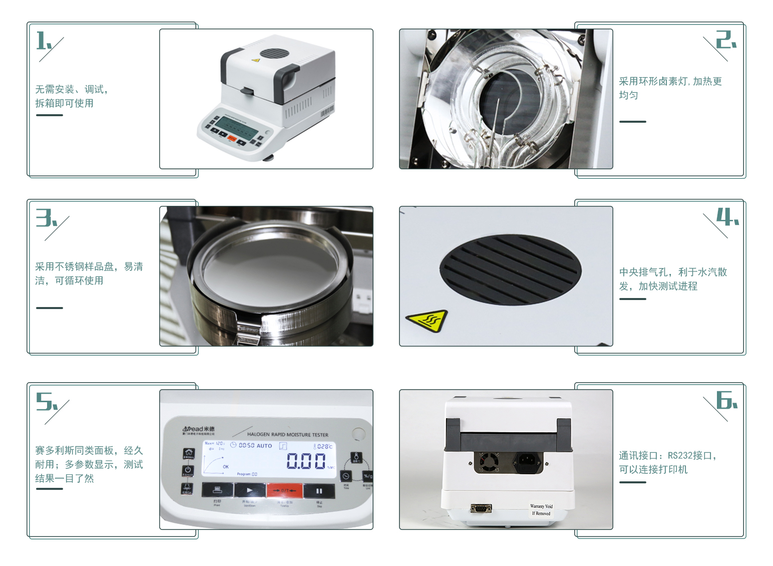 6.環(huán)形鹵素?zé)艏訜岱绞?,為樣品提供了均勻的加熱環(huán)境;
